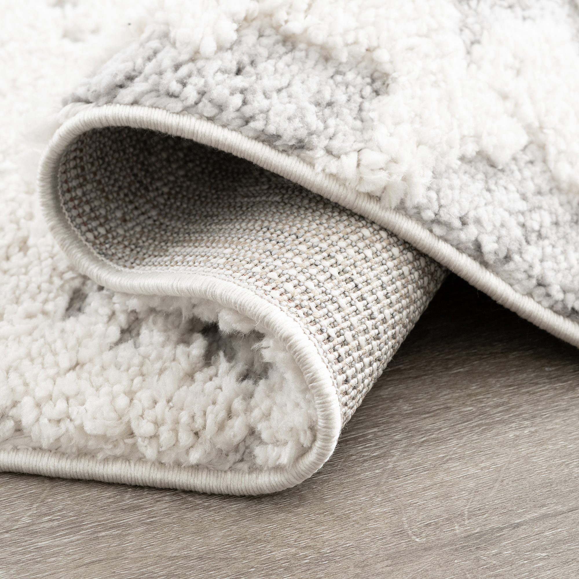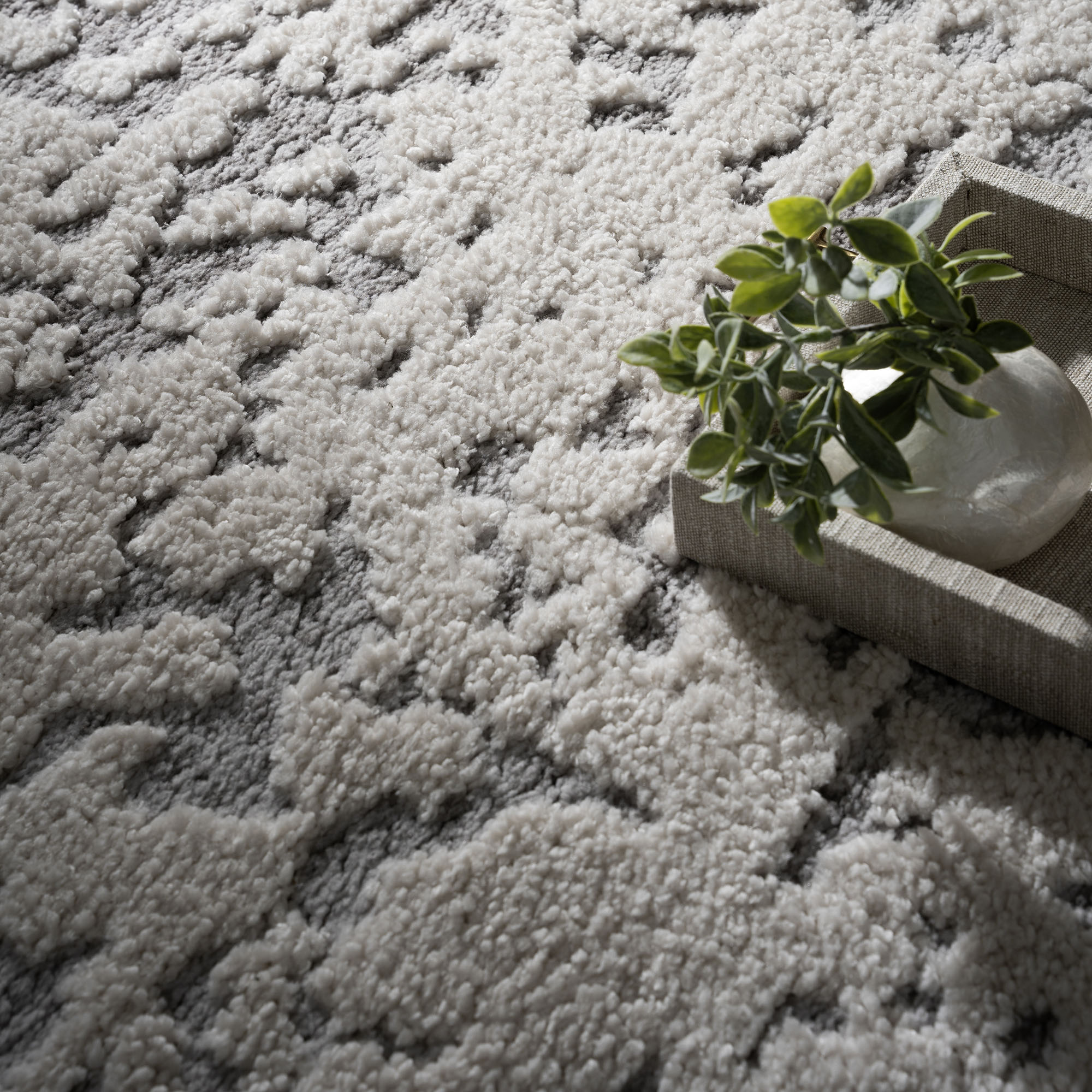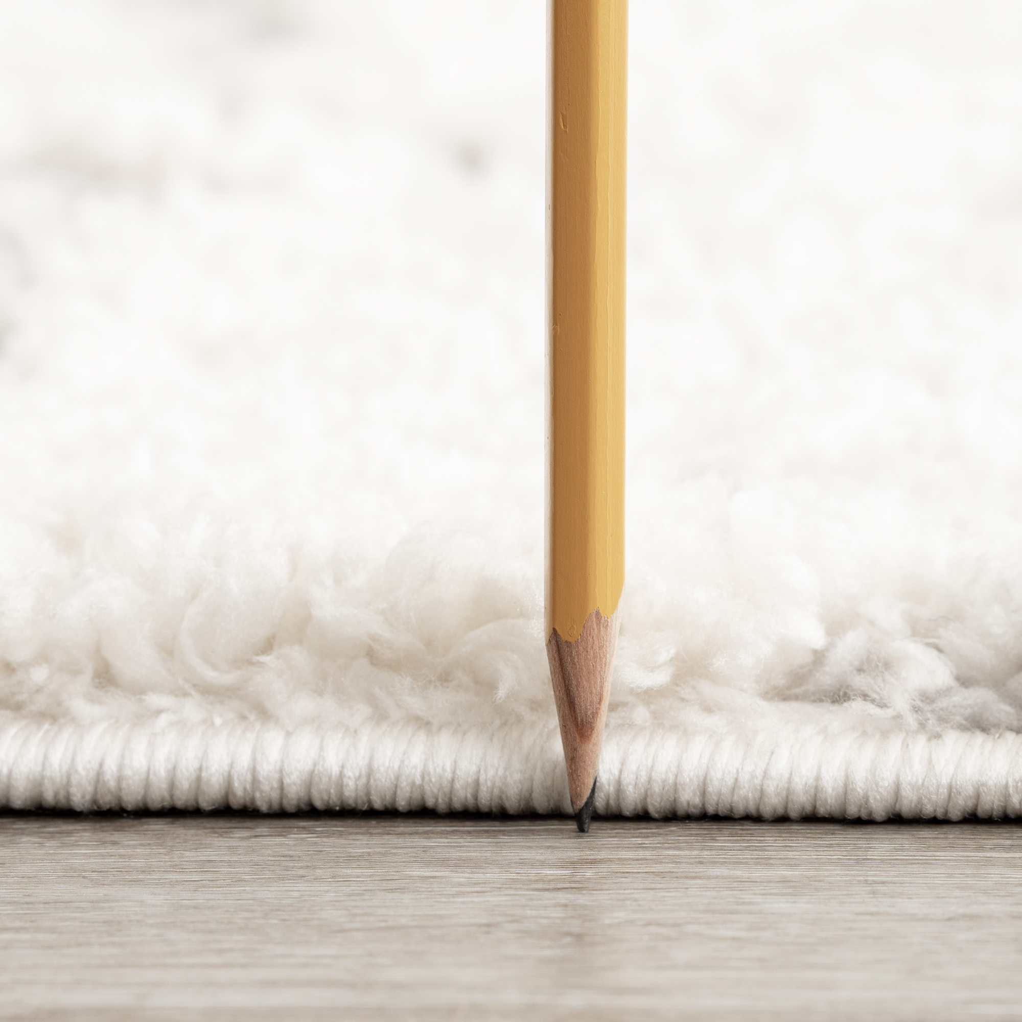 This contemporary shag indoor area rug features a plush polyester pile, providing a soft and luxurious feel underfoot. Its contemporary style adds a modern touch to your living space, making it a stylish addition to your home decor. The rug is backed with jute, which adds durability and stability to the overall structure. With its combination of comfort and trending aesthetics, this rug is not only a functional floor covering but also an attractive accent piece for any indoor setting. The rug is adorned with a unique dappled paint pattern, giving it a distinctive and modern look. The contemporary design adds a touch of sophistication to your home decor, making it an eye-catching focal point in any room.