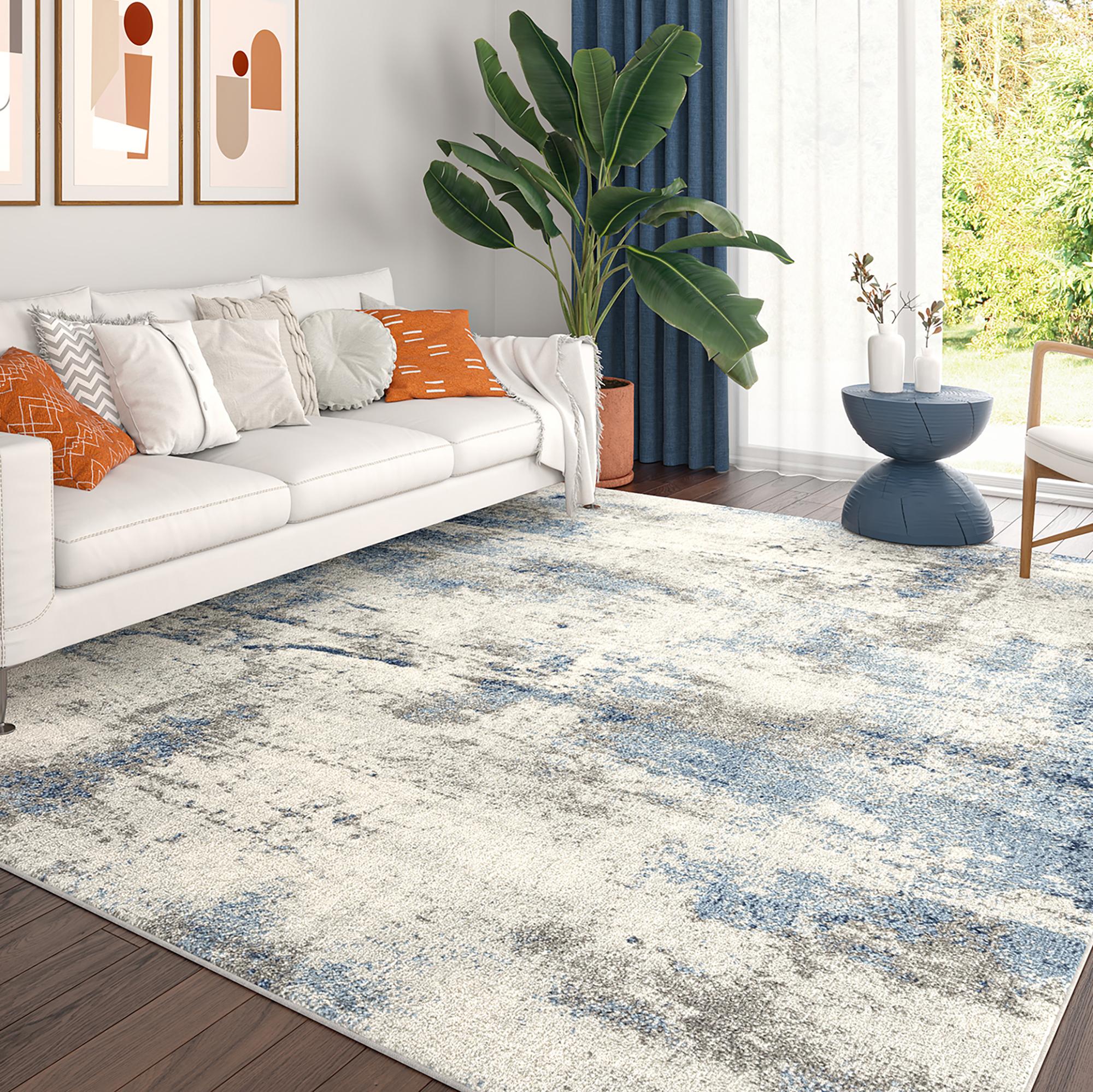 Soft colors and durable construction offer an area rug that is functional and beautiful. This contemporary modern abstract design is a transitional piece for versatility in your home decor. Natural stain-resistance and no additional treatments makes it kid and pet friendly.