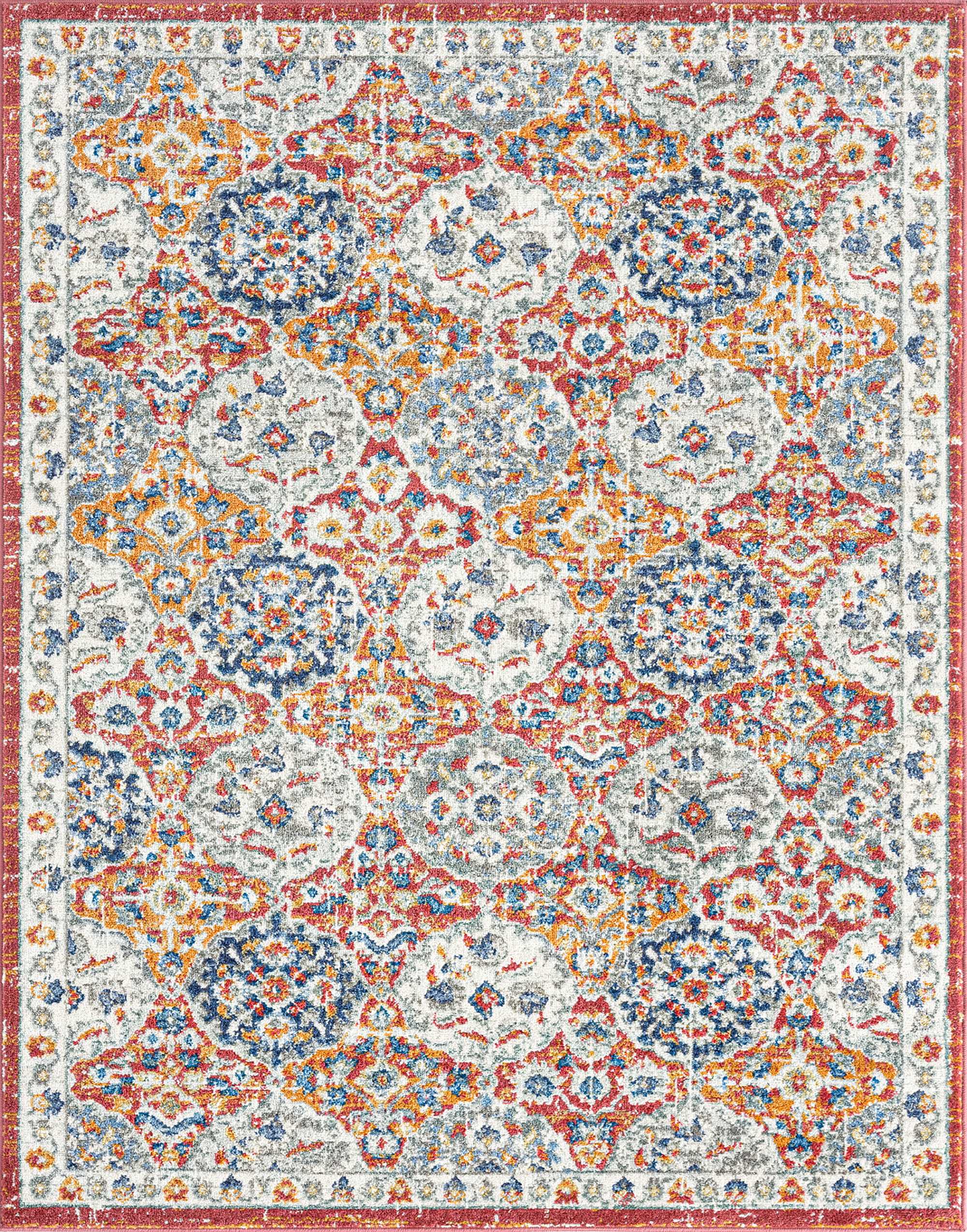 This colorful Boho style area rug offers comfort and elegance. The colorful Oriental pattern adds energy and feminine touch to any room. Natural stain-resistance and no additional treatments makes it kid and pet friendly.