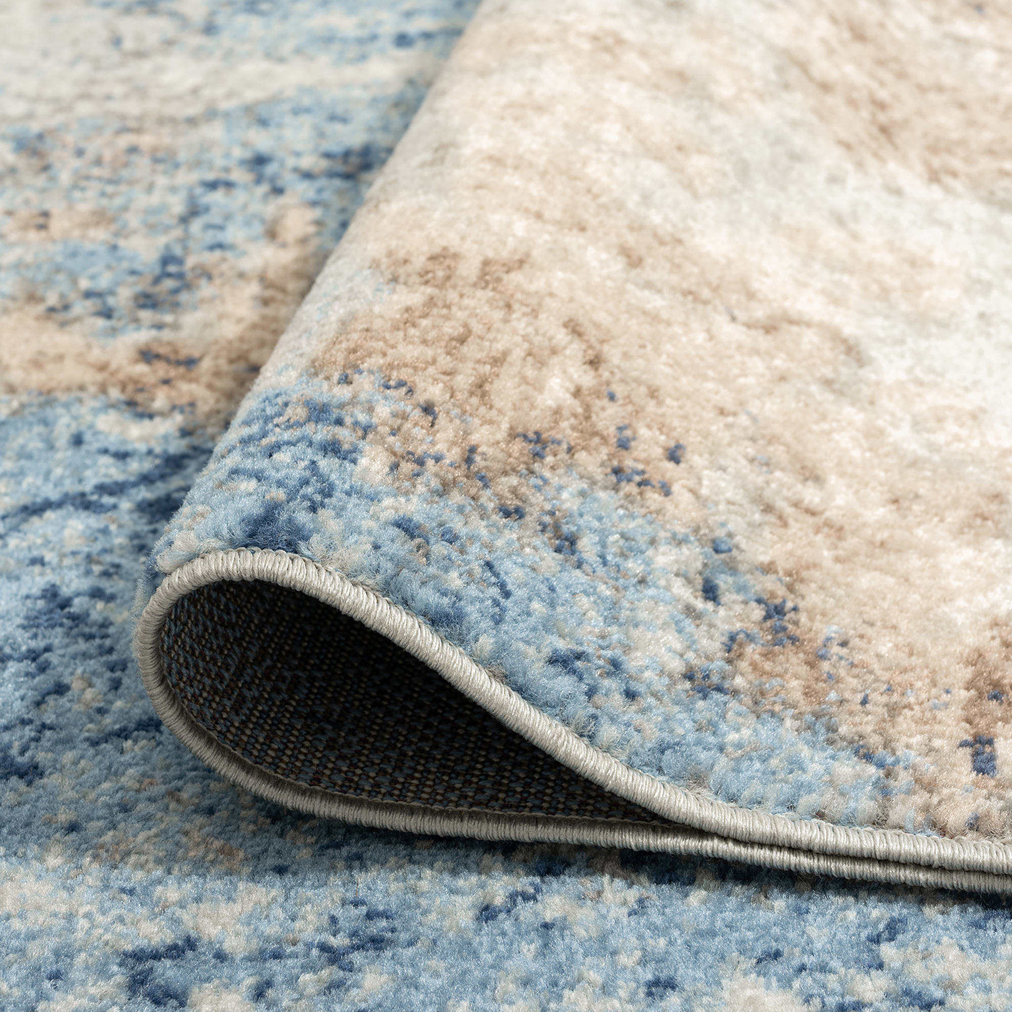This modern colorful area rug will add a pop of color to your indoor space. The contemporary abstract design has a unique appeal. Natural stain-resistance and no additional treatments makes it kid and pet friendly.