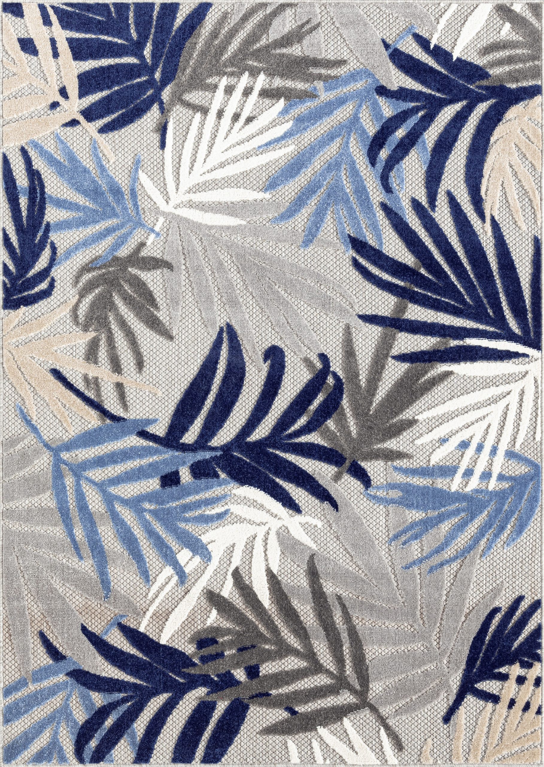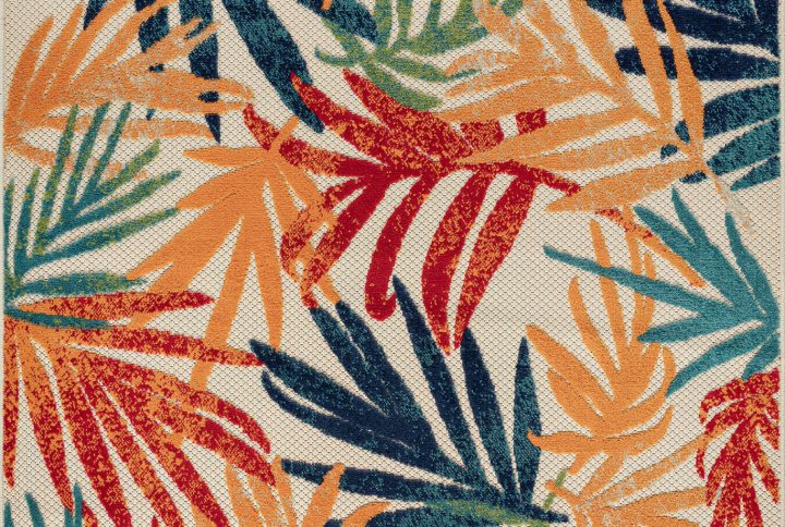 The high-low pile combined with easy-care endurance of this colorful waterproof outdoor rug creates a relaxing space for your indoor or outdoor area. A modern floral tropical palm frond leaf design is bold and beautiful.
