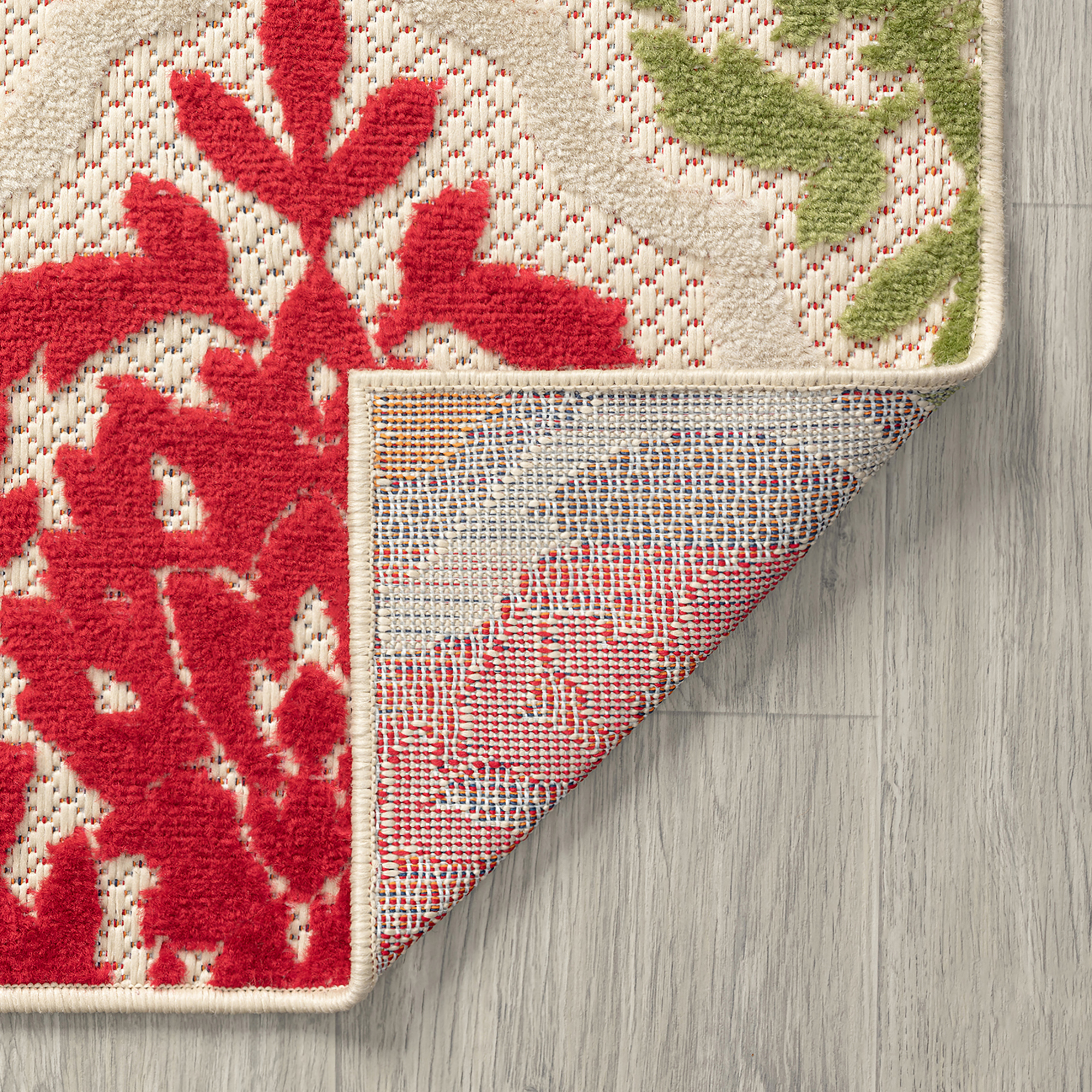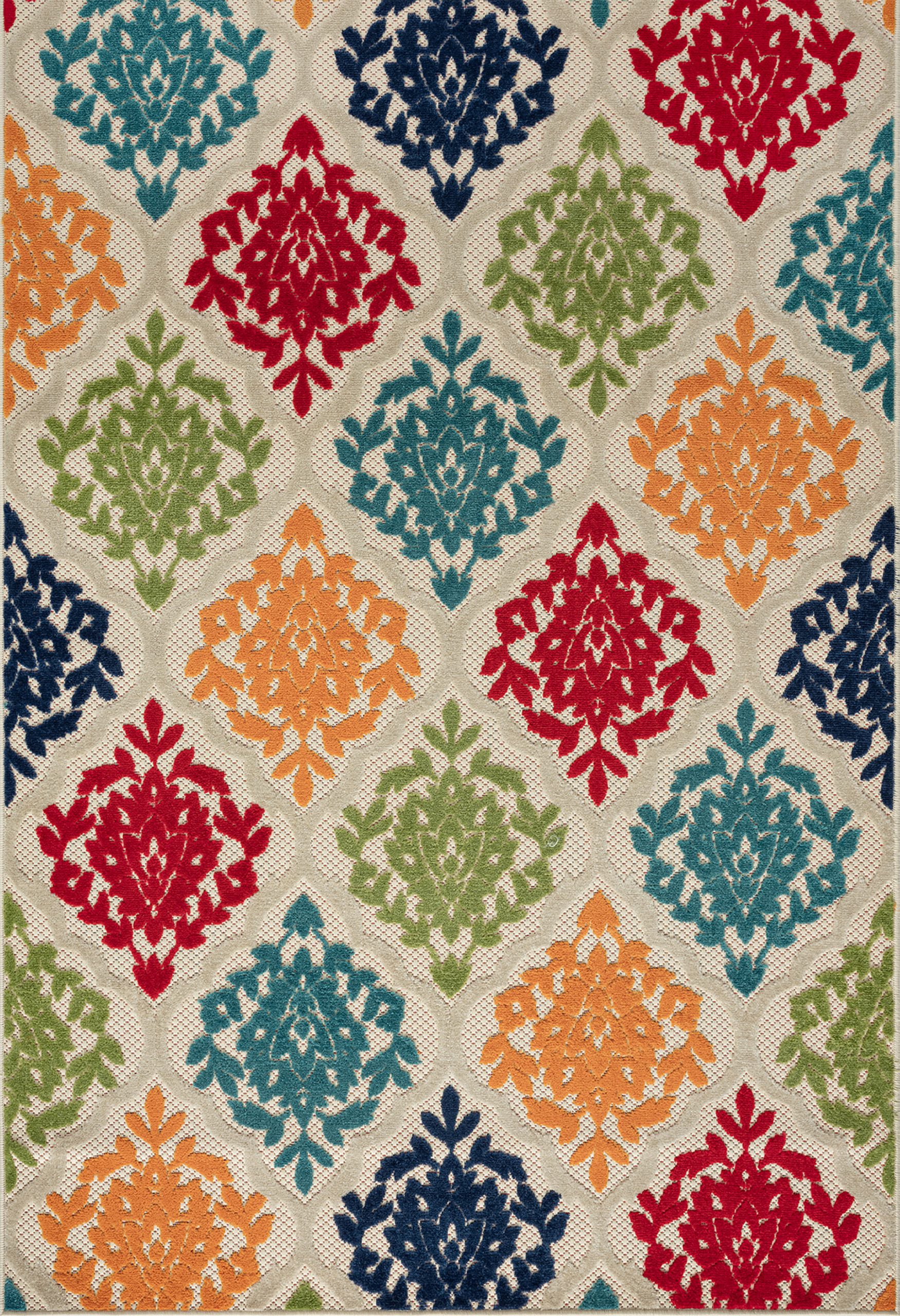 The high-low pile combined with easy-care endurance of this colorful waterproof outdoor rug creates a relaxing space for your indoor or outdoor area. This modern floral filigree medallion design has an air of elegance.