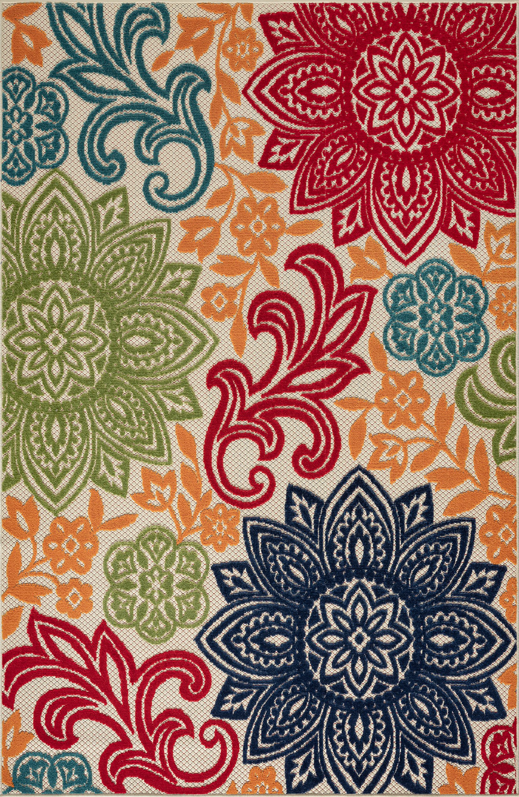 The high-low pile combined with easy-care endurance of this colorful waterproof outdoor rug creates a relaxing space for your indoor or outdoor area. A modern lush tropical floral mandala pattern is fun and inviting.