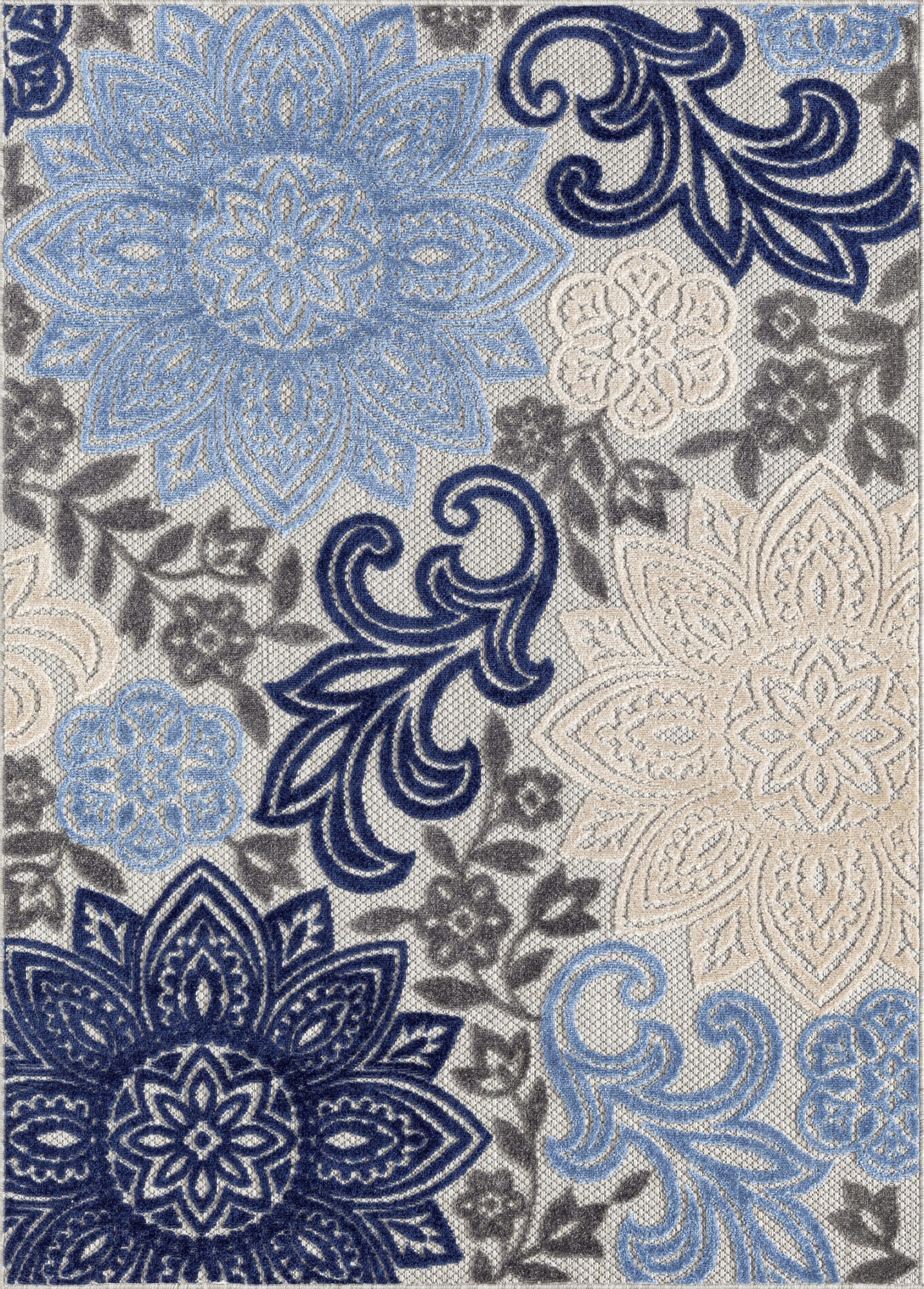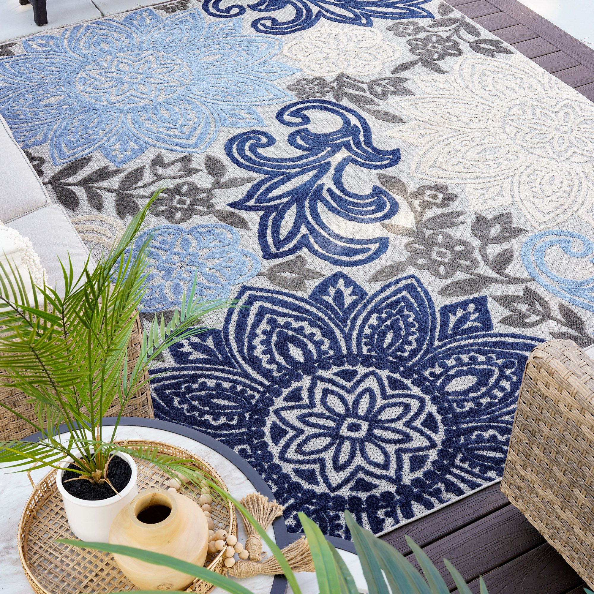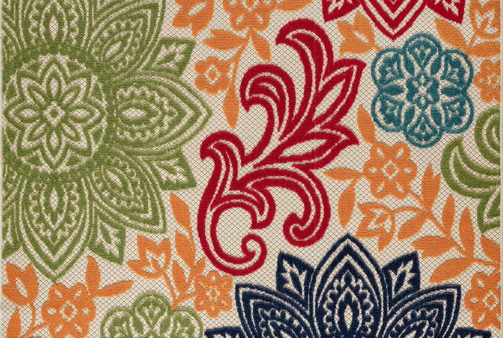 The high-low pile combined with easy-care endurance of this colorful waterproof outdoor rug creates a relaxing space for your indoor or outdoor area. A modern lush tropical floral mandala pattern is fun and inviting.
