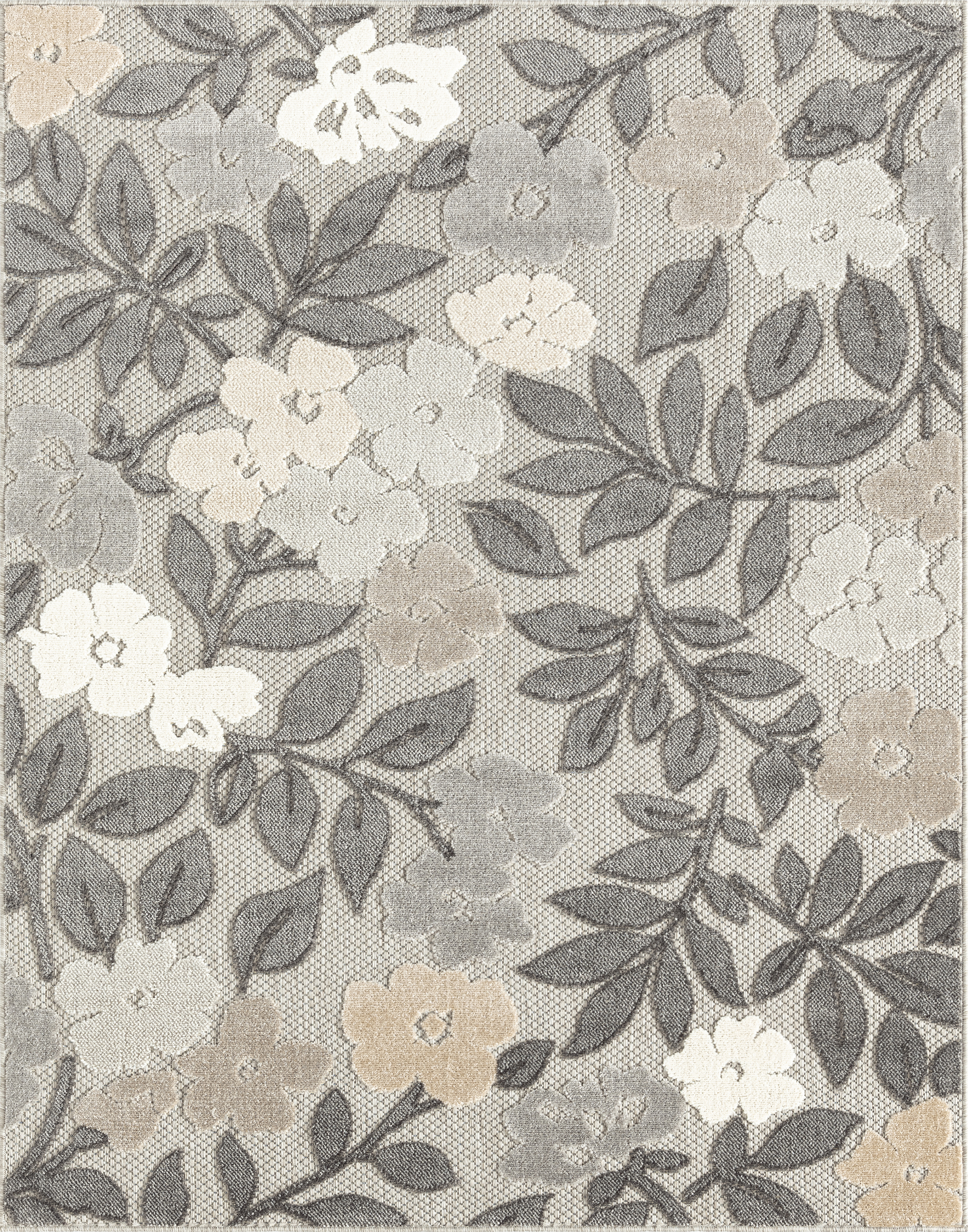 The high-low pile combined with easy-care endurance of this colorful waterproof outdoor rug creates a relaxing space for your indoor or outdoor area. The modern floral hibiscus design in an intertwining pattern is sure to liven your oasis.