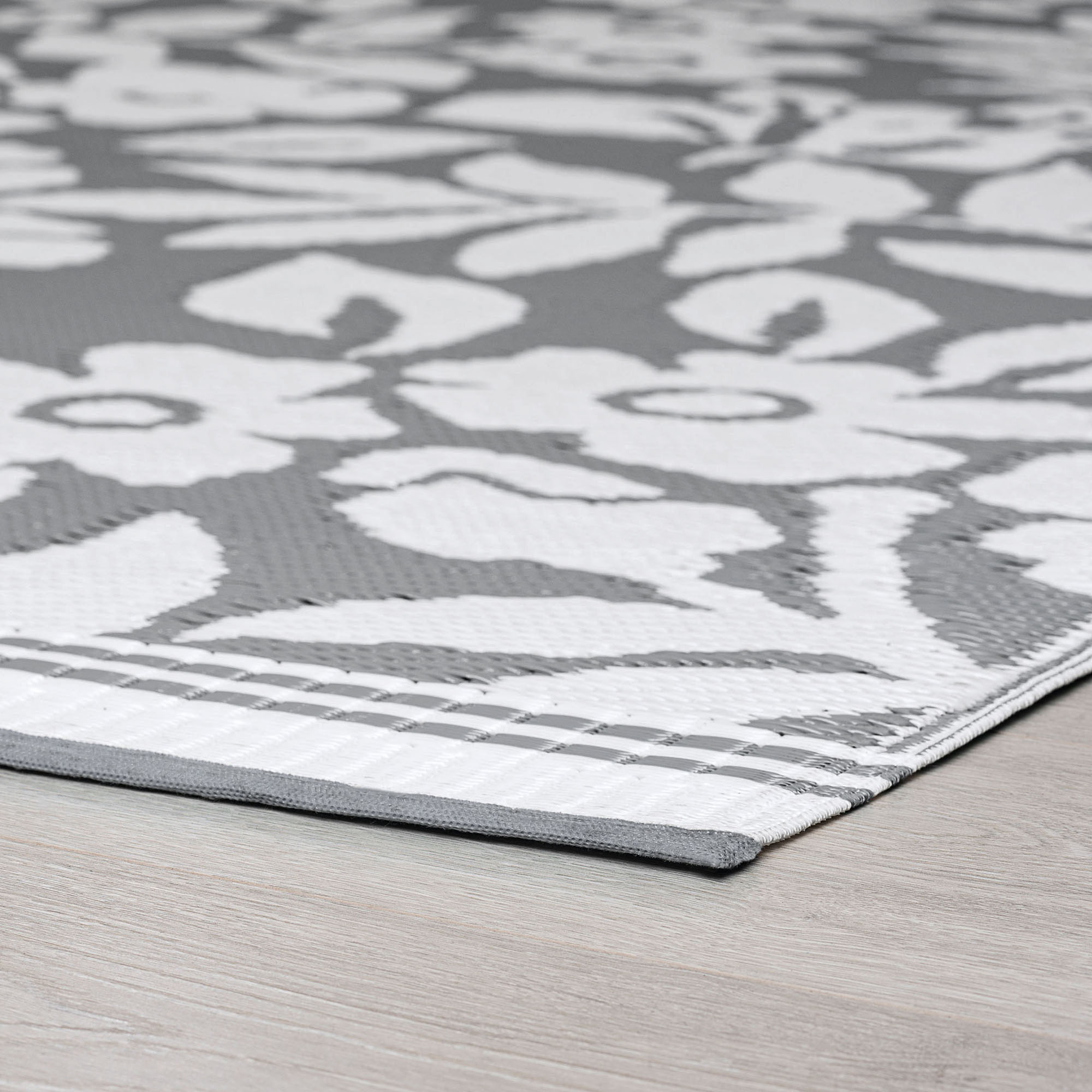 Create a tropical oasis in any indoor our outdoor space with this transitional floral endurance area rug. Built to achieve and treated with UV resistance to stay vibrant. Perfect for a family room, sunroom, porch, deck, den, living room, playroom, nursery. May be cleaned outside with mild detergent and garden hose, allow to dry thoroughly. Spot clean with mild detergent and water when necessary.
