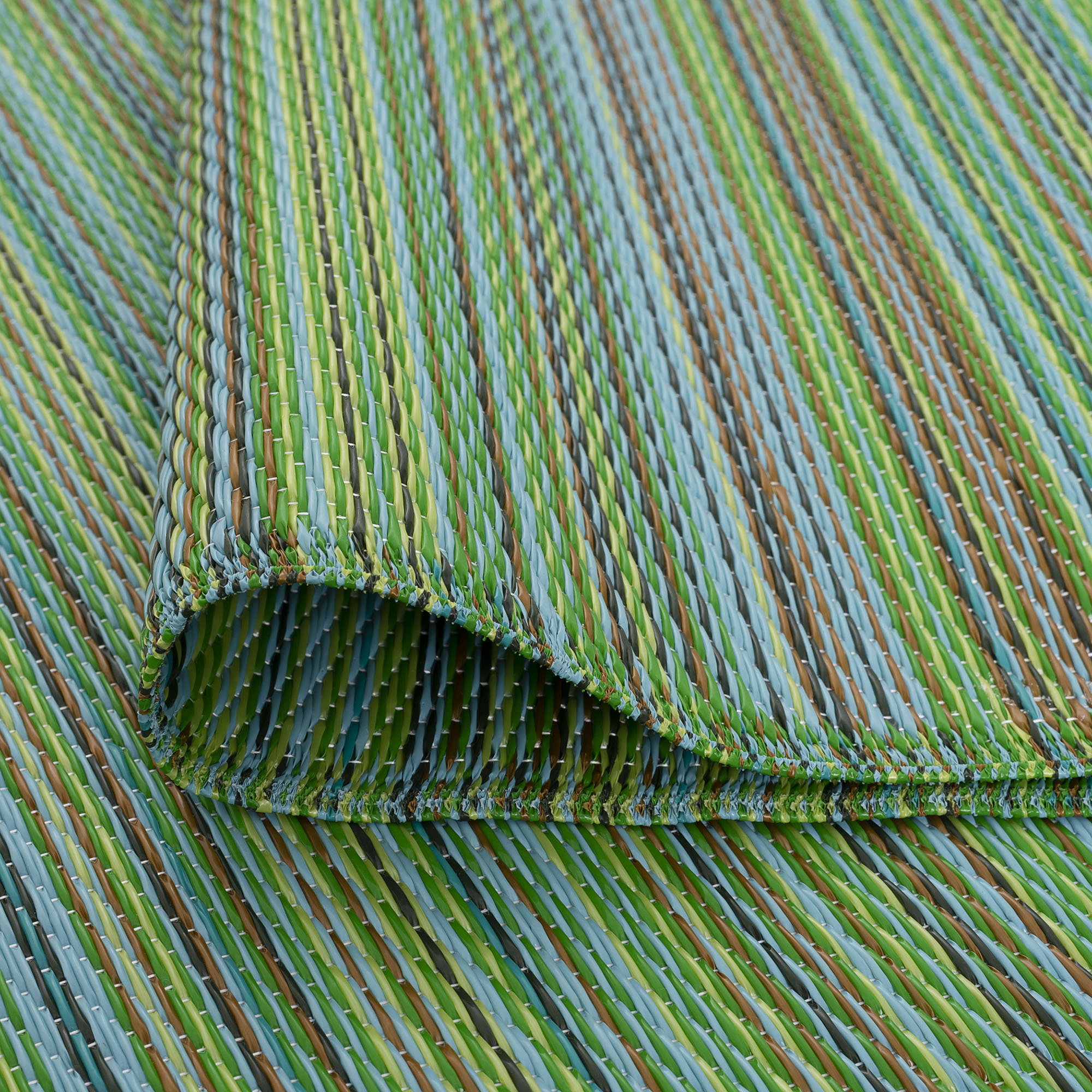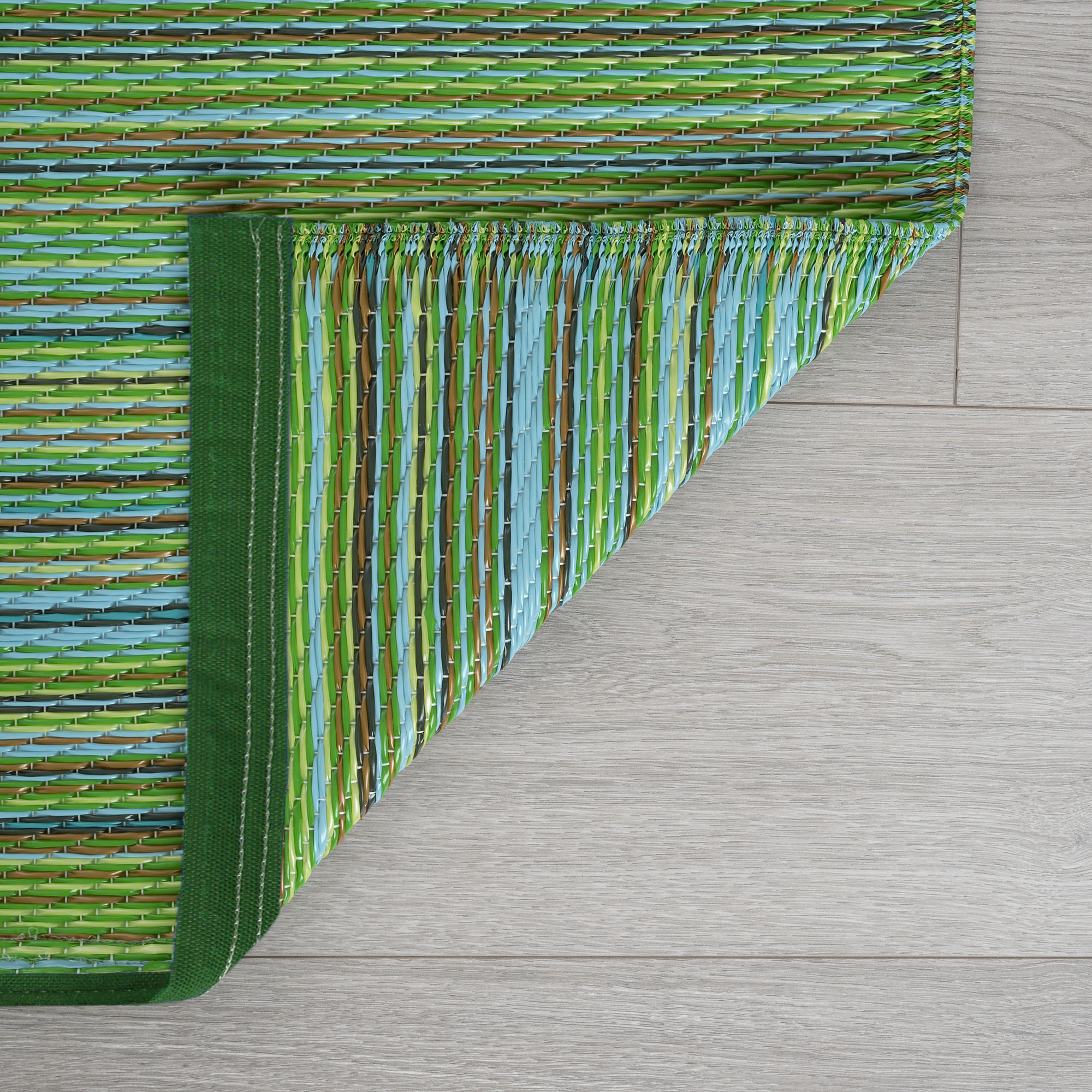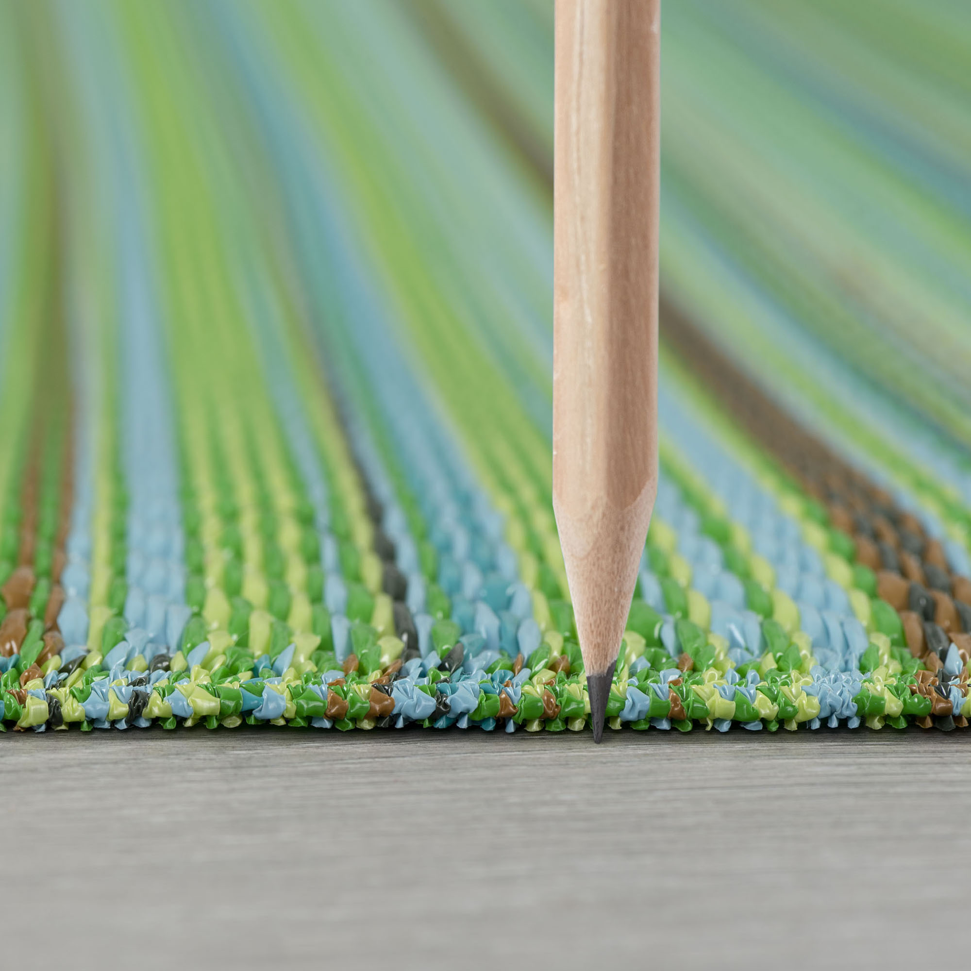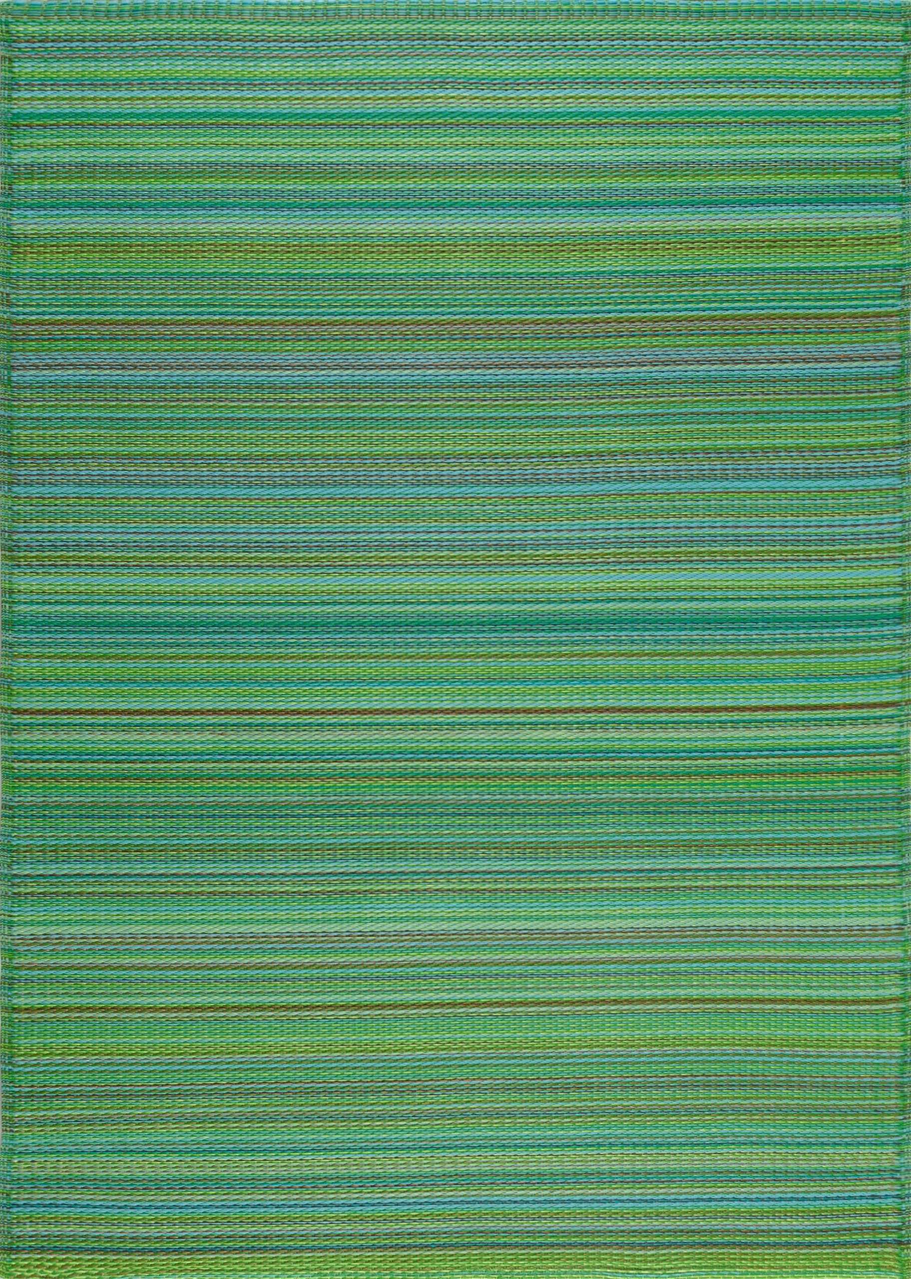 This trendy urban stripe area rug has unlimited appeal and is a winning addition to any indoor outdoor space. Built to achieve and treated with UV resistance to stay vibrant. Perfect for a family room, sunroom, porch, deck, den, living room, playroom, nursery. May be cleaned outside with mild detergent and garden hose, allow to dry thoroughly. Spot clean with mild detergent and water when necessary.