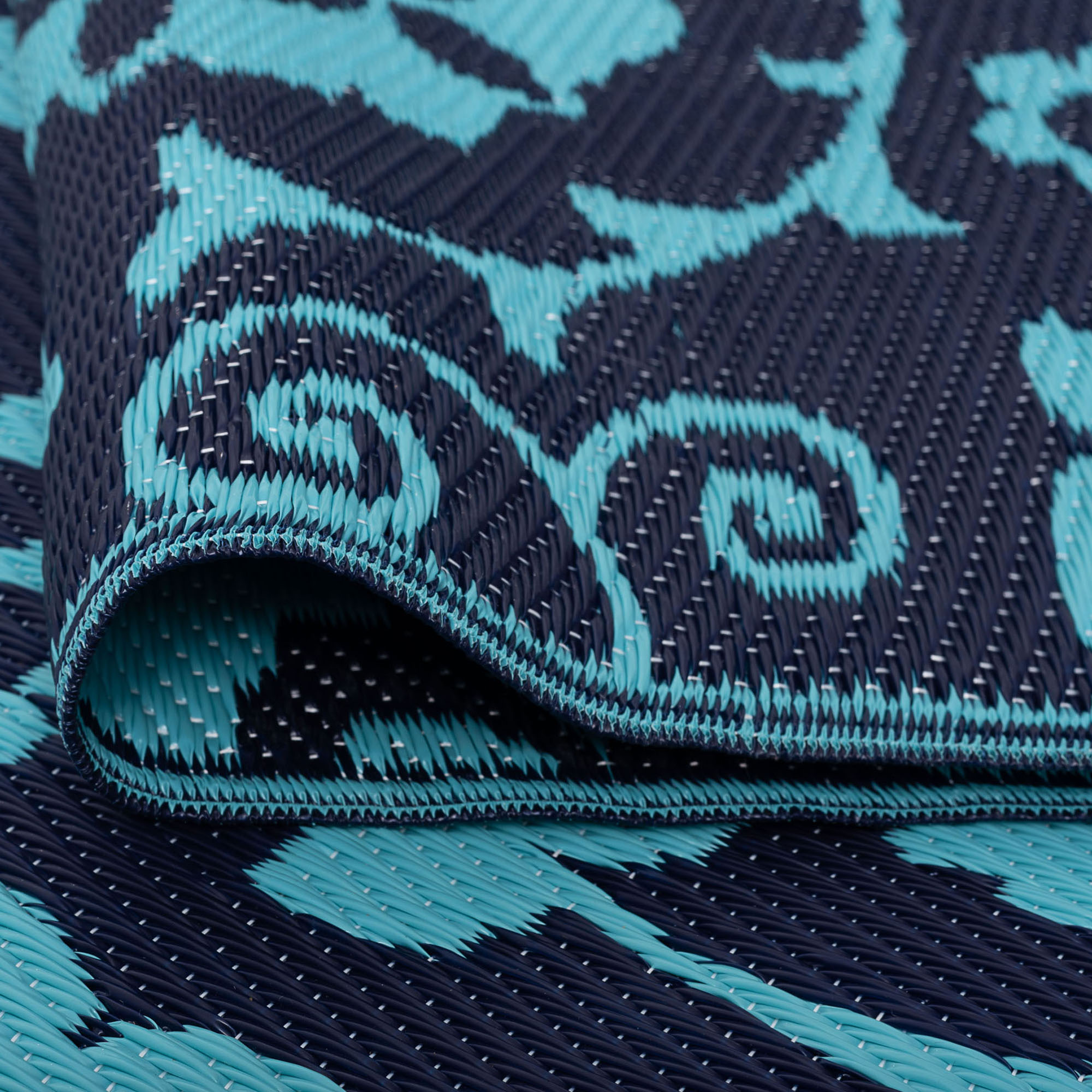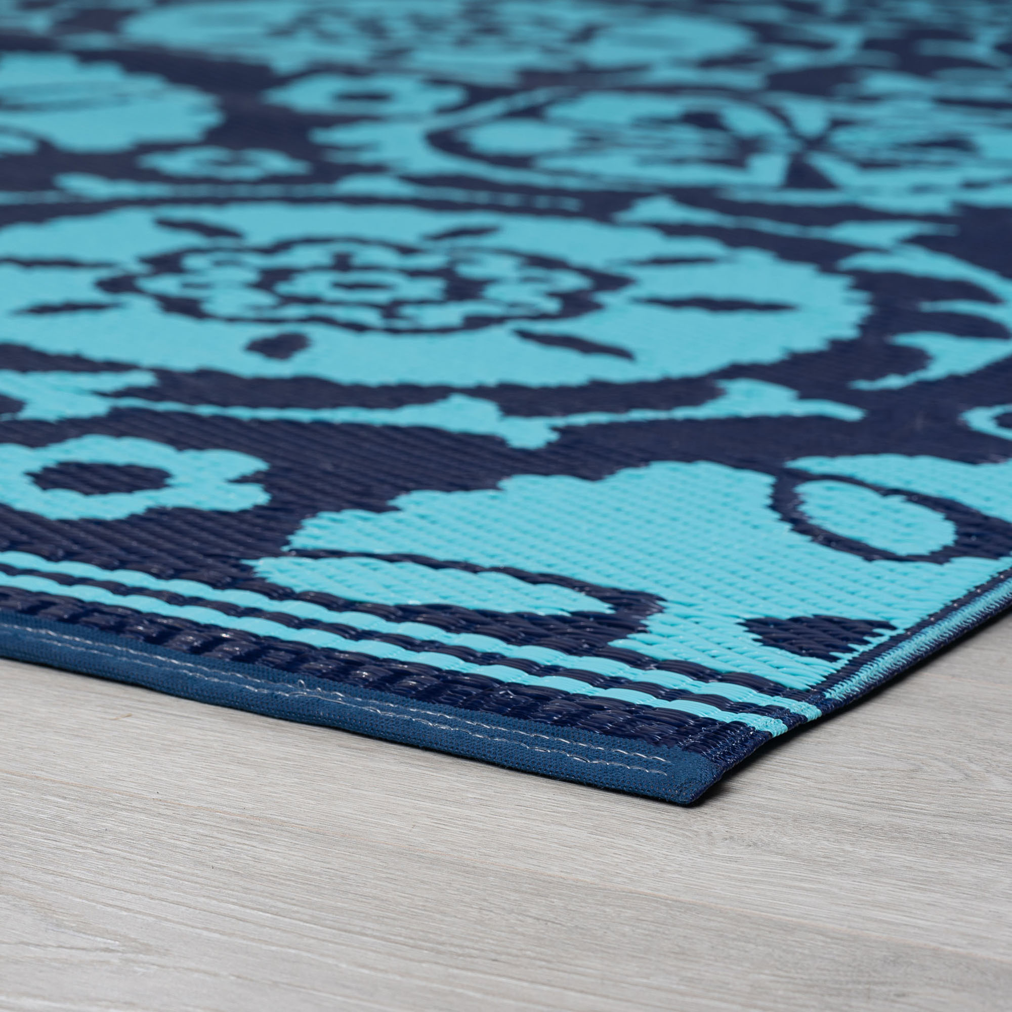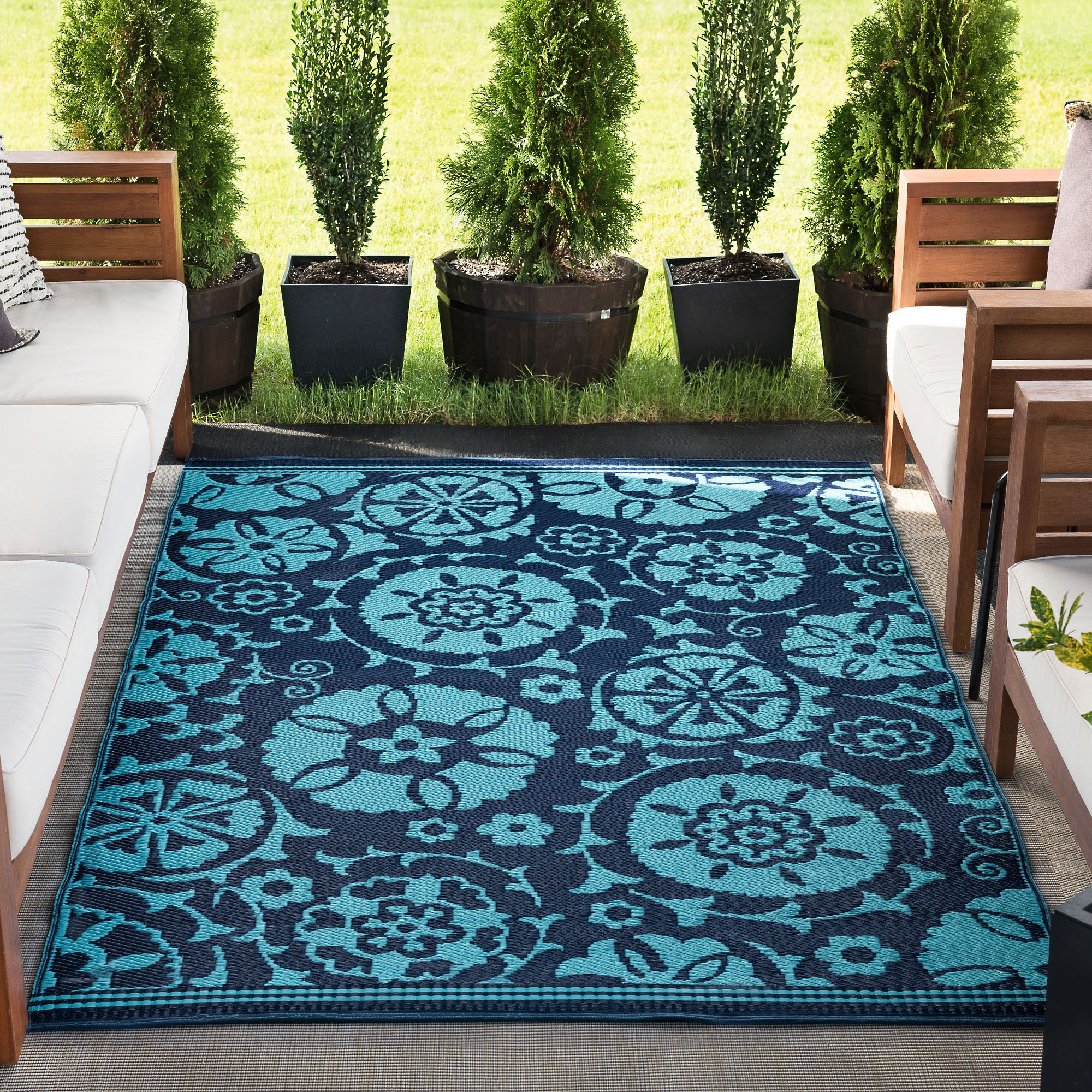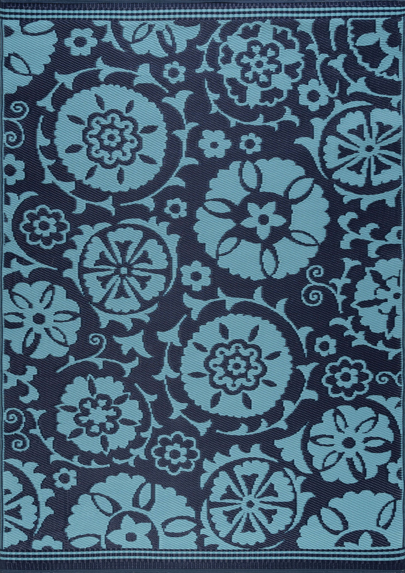 This fresh Suzani pattern indoor outdoor area rug is a stunning foundation for any relaxing room. Built to achieve and treated with UV resistance to stay vibrant. Perfect for a family room, sunroom, porch, deck, den, living room, playroom, nursery. May be cleaned outside with mild detergent and garden hose, allow to dry thoroughly. Spot clean with mild detergent and water when necessary.