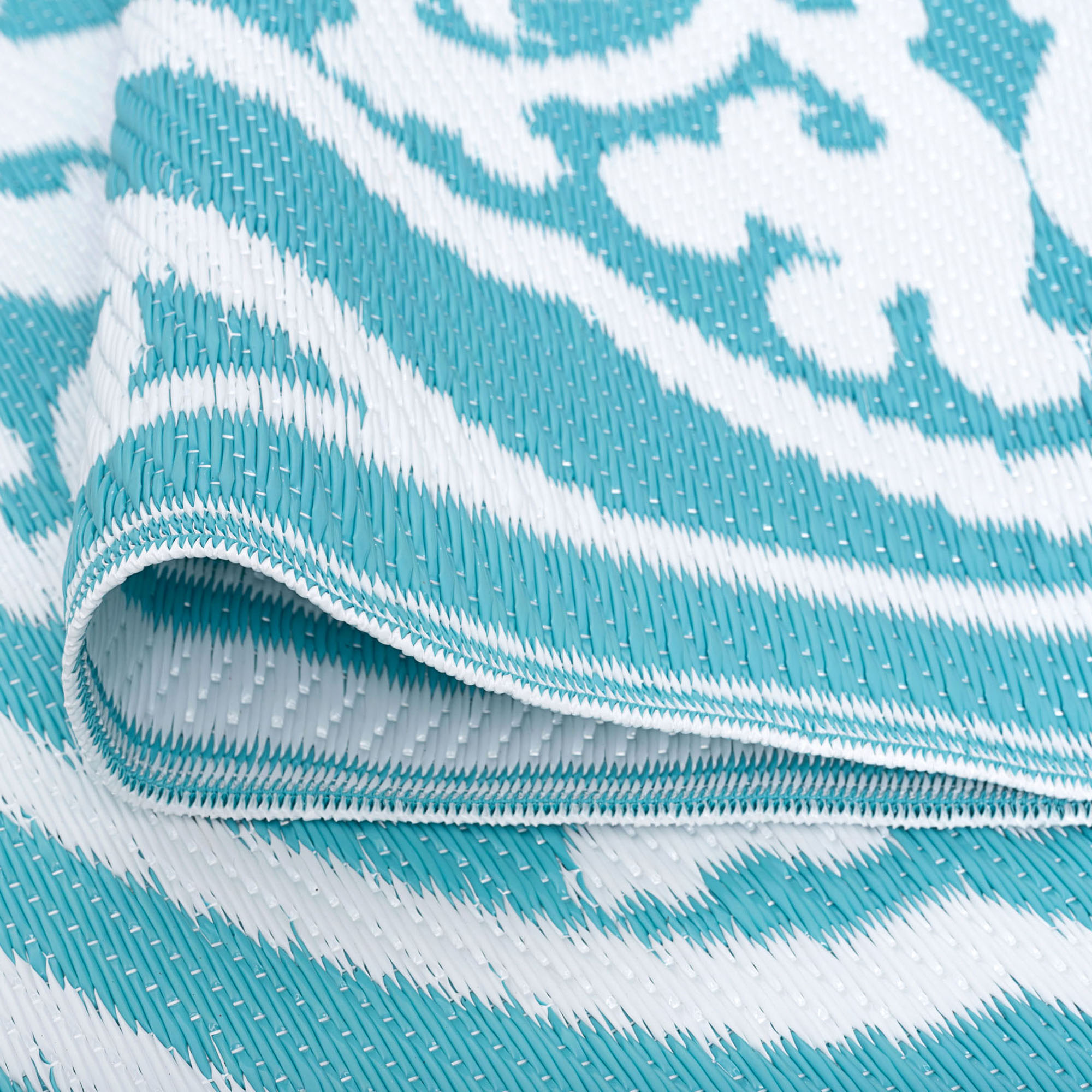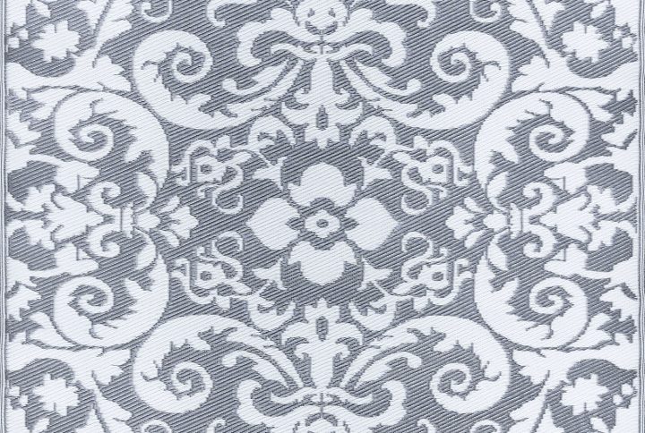 This ornate damask pattern indoor outdoor area rug adds a touch of refinement to any space. Built to achieve and treated with UV resistance to stay vibrant. Perfect for a family room, sunroom, porch, deck, den, living room, playroom, nursery. May be cleaned outside with mild detergent and garden hose, allow to dry thoroughly. Spot clean with mild detergent and water when necessary.