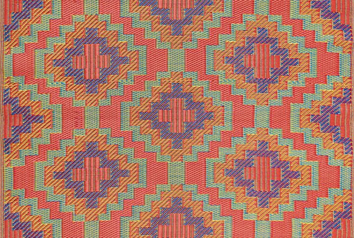 This versatile Scandinavian pattern indoor outdoor area rug fits well with tribal decor or any contemporary setting. Built to achieve and treated with UV resistance to stay vibrant. Perfect for a family room, sunroom, porch, deck, den, living room, playroom, nursery. May be cleaned outside with mild detergent and garden hose, allow to dry thoroughly. Spot clean with mild detergent and water when necessary.