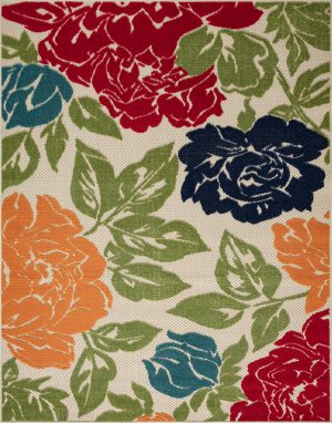 Add a natural element to your style with this area rug. This rug features an upbeat floral pattern in rich hues of red, brown, blue… -